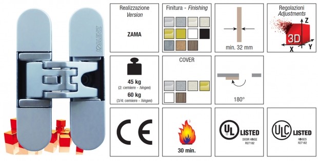BISAGRA INVISIBLE 180º 3-D 23X95 NQ.S MOD.K6200 SERIE KUBICA